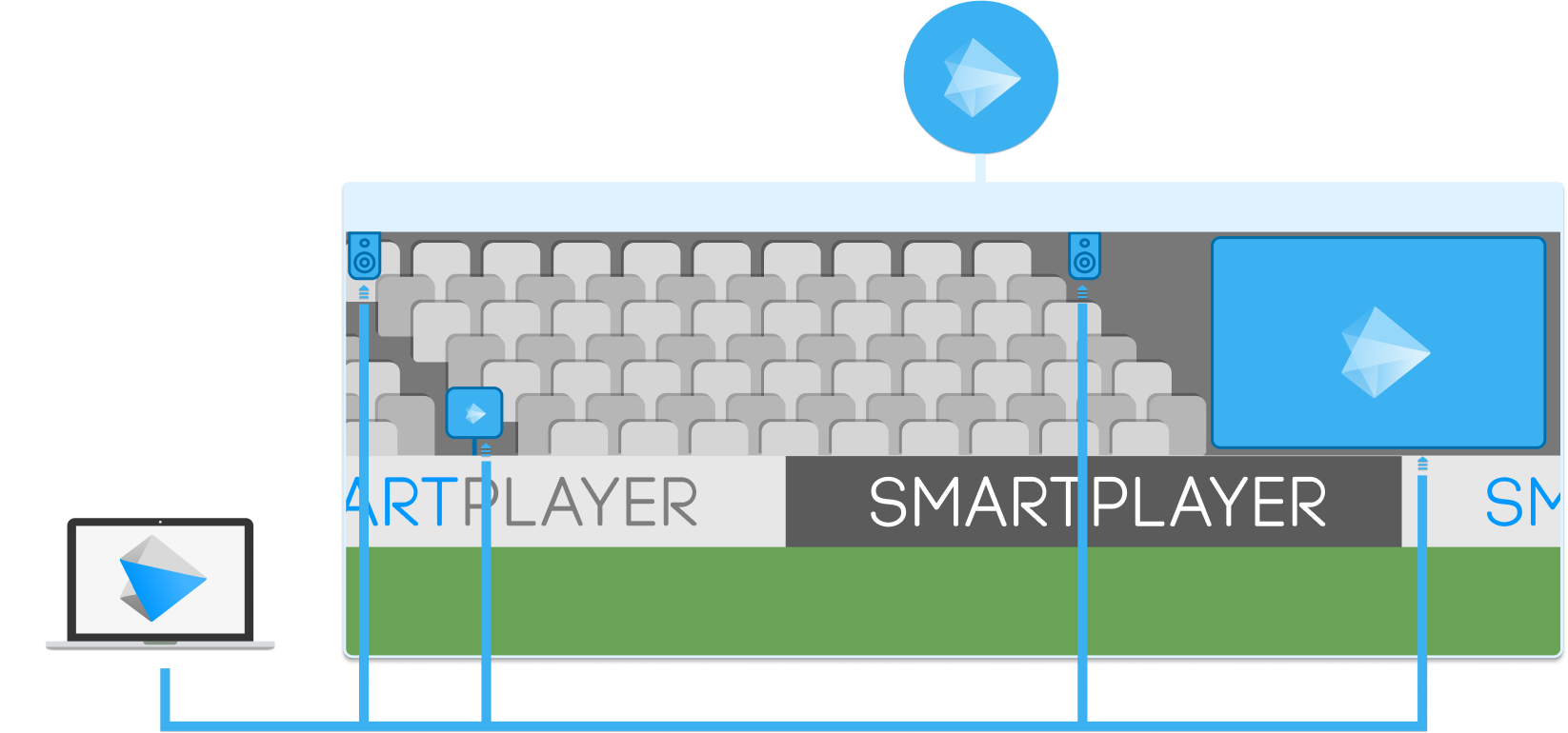 Possibility of playing an additional audio track with background music, independent of the video sequence on the screen. No additional equipment required